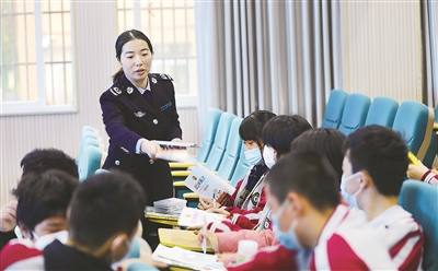 近日,安徽省合肥市蜀山區(qū)琥珀街道聯(lián)合當(dāng)?shù)厮痉ㄋ_展憲法宣傳進(jìn)校園活動(dòng),為中學(xué)生講解憲法知識。 (圖片來源:視覺中國)