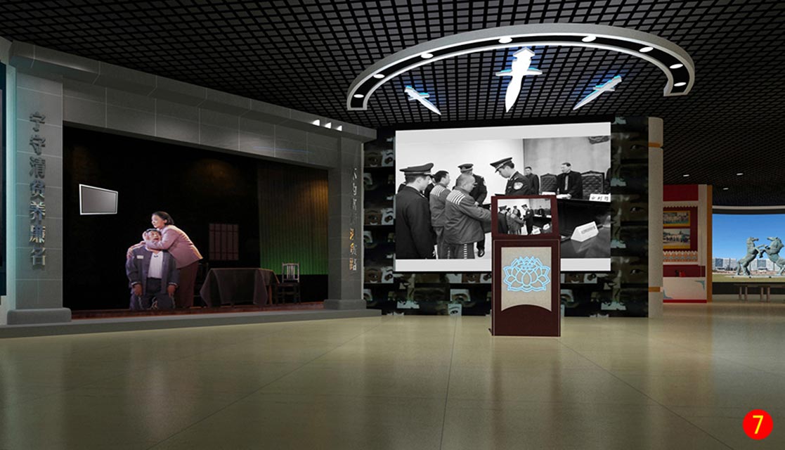 該基地較好地將蒙元文化特色融入基地設(shè)計(jì)中,展廳主題鮮明,集 “參觀、展覽、宣誓、教育”等多種功能為一體,為暢通流線一體化參觀模式。館內(nèi)充分利用聲、光、電等現(xiàn)代科技手段,結(jié)合網(wǎng)絡(luò)信息技術(shù),圖文并茂、聲情相融、結(jié)合現(xiàn)象剖析本質(zhì),以案警人,具有較強(qiáng)的科技感和互動(dòng)性。