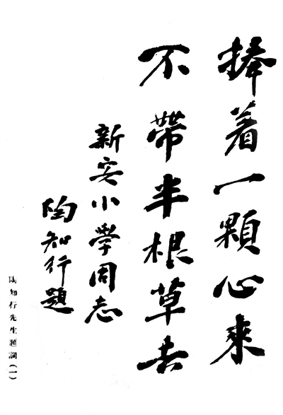 “捧著一顆心來,不帶半根草去”出自人民教育家陶行知的筆下。鮮為人知的是,這句流傳了近一個世紀的名言,是陶行知寫給江蘇淮安新安小學的。