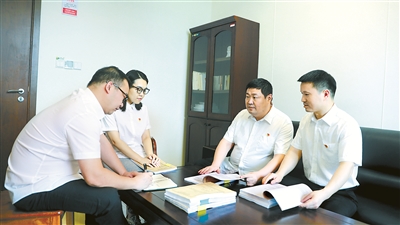 圖為鄭州市紀委監(jiān)委第十八審查調(diào)查室和案件審理室工作人員認真研究楊紅偉嚴重違紀違法案,深入探討證據(jù)認定相關(guān)問題。穆偉偉 攝
