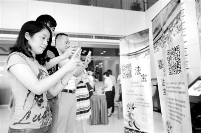 上海市嘉定區(qū)結(jié)合全區(qū)村(居)“兩委”換屆工作,舉辦“廉‘接’你我他”主題宣傳活動(dòng),通過(guò)黨規(guī)黨紀(jì)專題教育培訓(xùn)、村(居)干部廉潔履職巡回講座、廉政知 識(shí)競(jìng)賽等方式,加強(qiáng)對(duì)農(nóng)村基層干部廉潔履職的教育引導(dǎo)。圖為8月18日,該區(qū)村(居)干部通過(guò)手機(jī)掃描微信二維碼參加廉政知識(shí)測(cè)試。余臻 攝