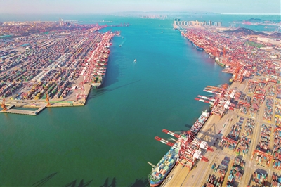 今年一季度,我國(guó)外貿(mào)進(jìn)出口總值9.42萬(wàn)億元人民幣,同比增長(zhǎng)10.7%,連續(xù)7個(gè)季度保持正增長(zhǎng)。圖為4月23日,青島前灣港集裝箱碼頭一派繁忙景象。 (圖片來(lái)源:視覺(jué)中國(guó))